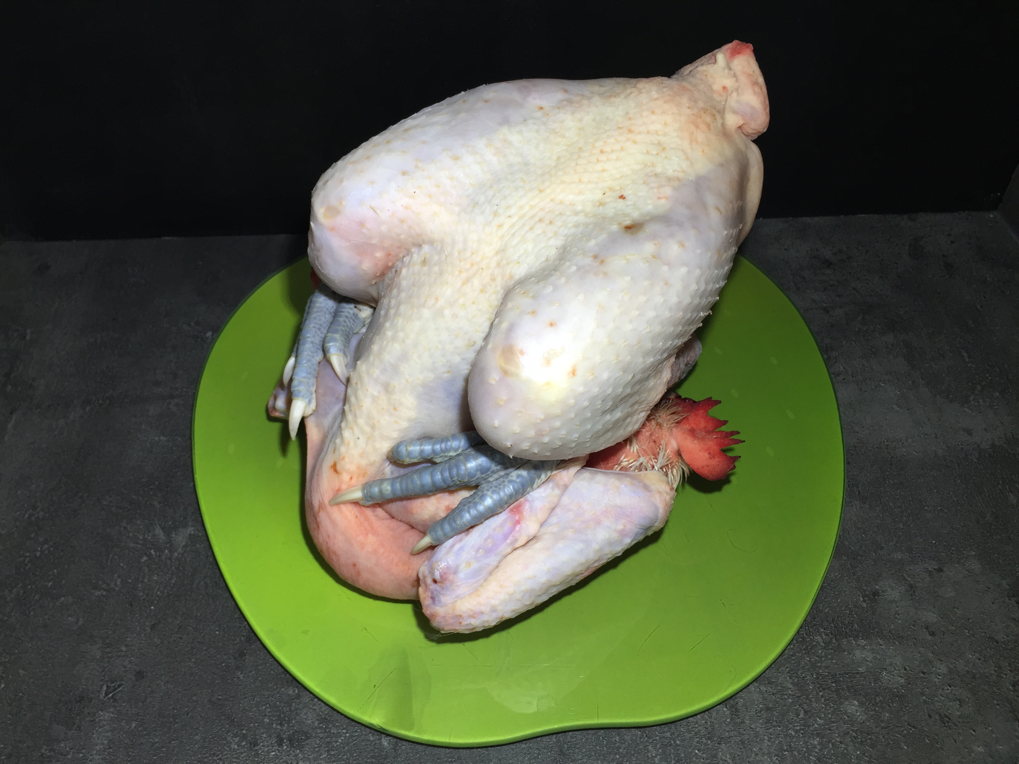 Généreux et savoureux poulet fermier à faire rôtir au four ou mijoté en cocotte 1 heure 30 – 2 heures a 160° selon le poids .